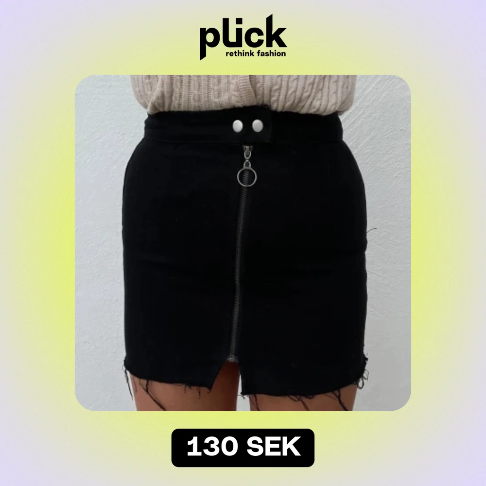 Säljer en superfin svart kjol med en cool dragkedja framtill. Den har en rå kant nertill som ger en lite edgy look. Perfekt för både vardag och fest! 🖤