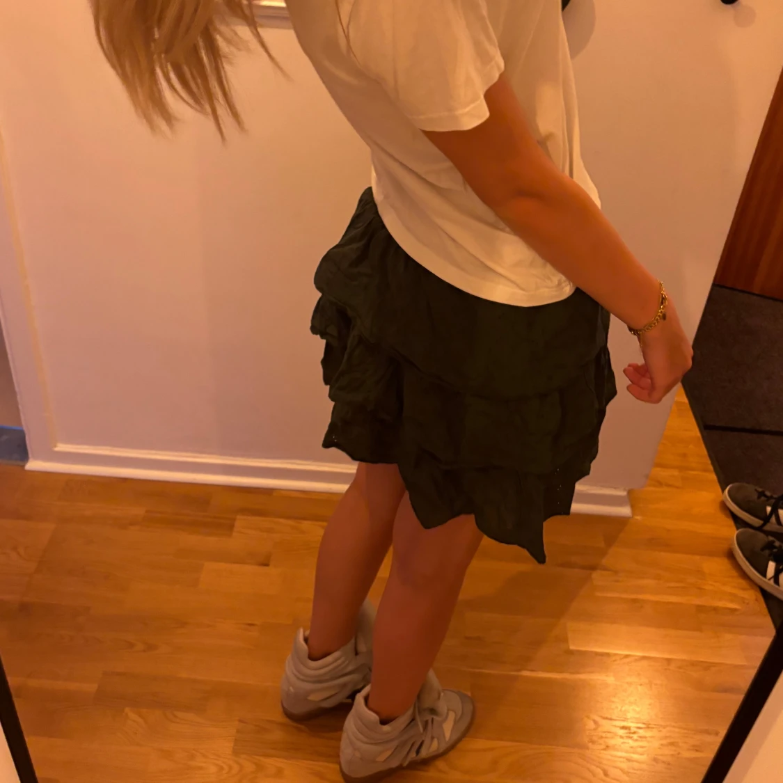 En supersöt mörkgrön volangkjol från brandy melville!! 🩷 bara använd 2 gånger och inga tecken på användning, köpt i Italien för ett år sedan. Storlek står inte men skulle säga S! ❣️