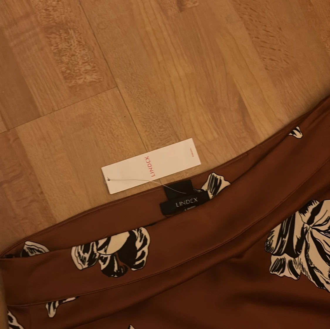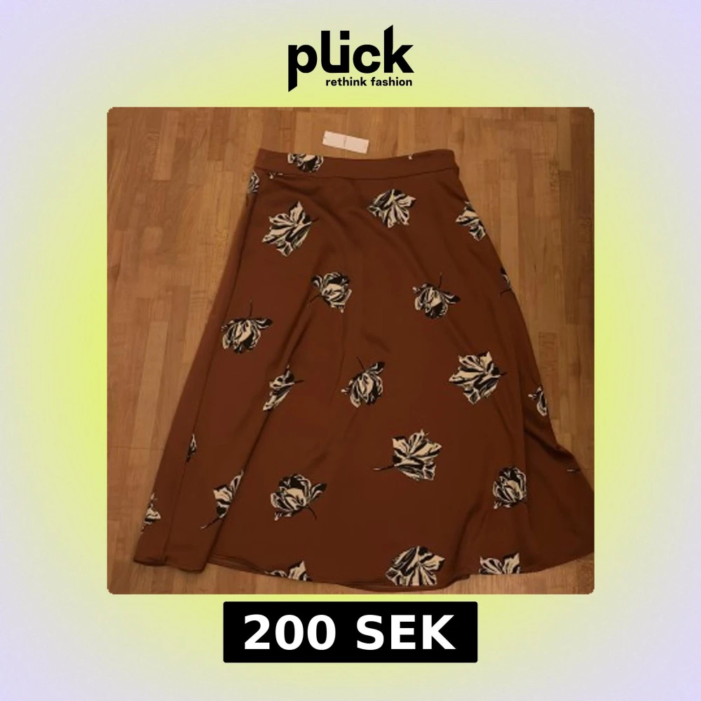 Säljer en brun kjol från Lindex med svartvita blommor. Kjolen har en mjuk, svepande form och är perfekt för dig som gillar en stilren men ändå lekfull look.
