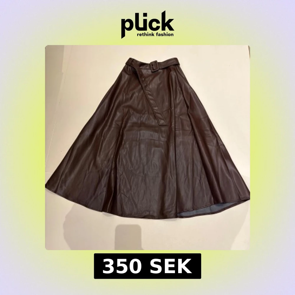 Snygg brun långkjol i skinnimitation från Exquiss Paris. Kjolen har en A-linjeformad siluett och ett matchande bälte i midjan som ger extra edge. Perfekt för dig som vill ha en statement piece i garderoben.