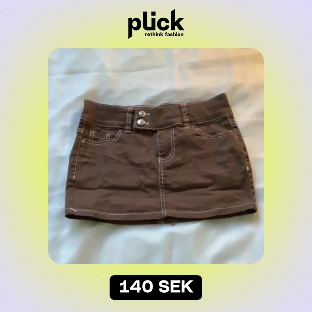 Brun mini jeans kjol med vit kontrast från h&m! Den är i storlek 32 skulle säga att de motsvarar XS. Kom privat för frakt och hela summan, betalning sker via swish!❤️🔥