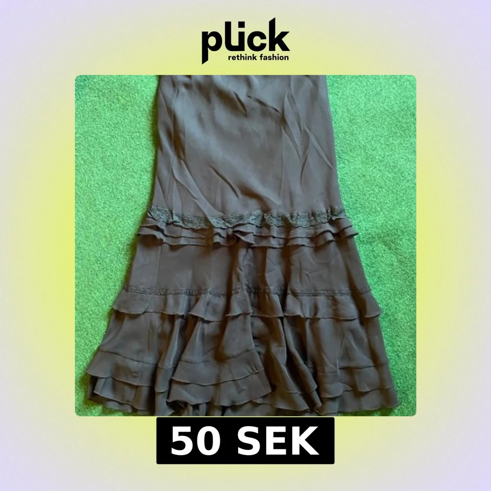 Supersöt svart kjol från KappAhl med flera volanglager och spetsdetaljer. Kjolen har en mjuk, flowy känsla och är perfekt för dig som gillar romantisk stil. Den är knälång och har en feminin siluett som ger en snygg look.