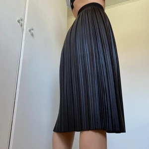 Helt oanvänd plisserad kjol i fakeläder från Chiquelle! Stl 36 men kan passa 34 samt 38 då det är resår i midjan. Nypris: 300kr