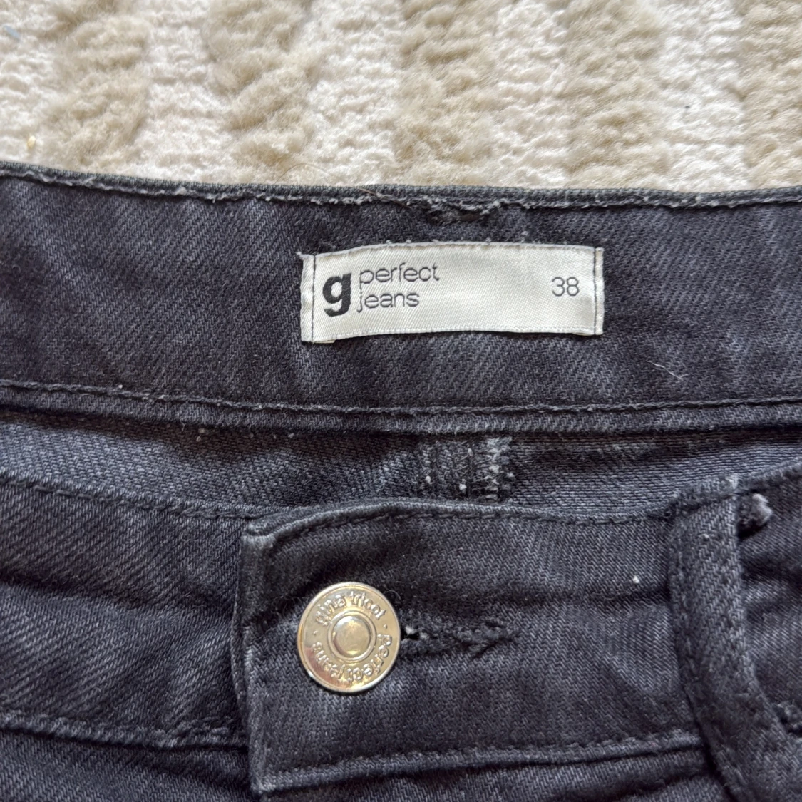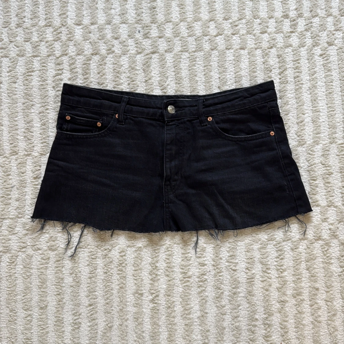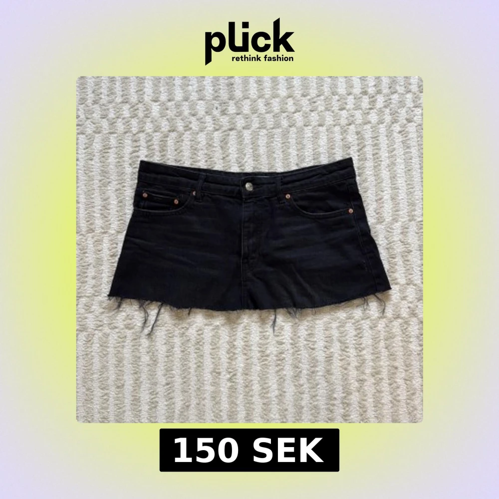 Svart kort jeanskjol från Gina Tricot i modellen Perfect Jeans. Det var från början ett par shorts som jag har klippt till en kjol. Kjolen har rå, fransig kant nertill, klassiska jeansfickor fram och bak samt knapp och dragkedja framtill. Perfekt för en cool och avslappnad look.