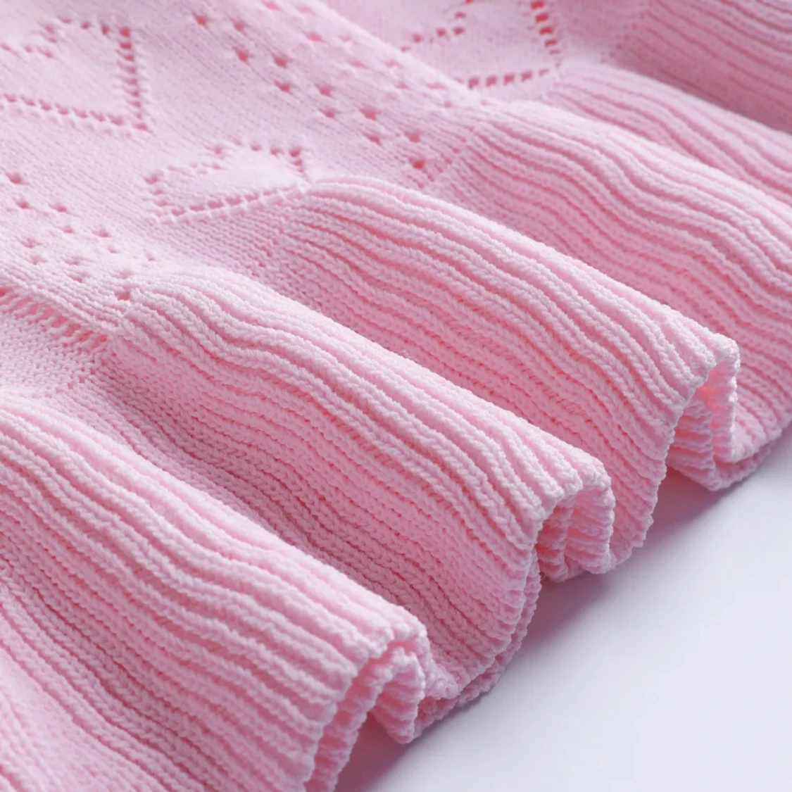 Kjol i hjärtmönster i form av ”hål”. Superhärlig rosa färg & bra material, tjockare tyg stickad, bra i vinter till tex thights men ger ändå lite space & inte för varm pga hålen. prislappen kvar<3 superfin men säljer pga aldrig använder & behöver pengarna