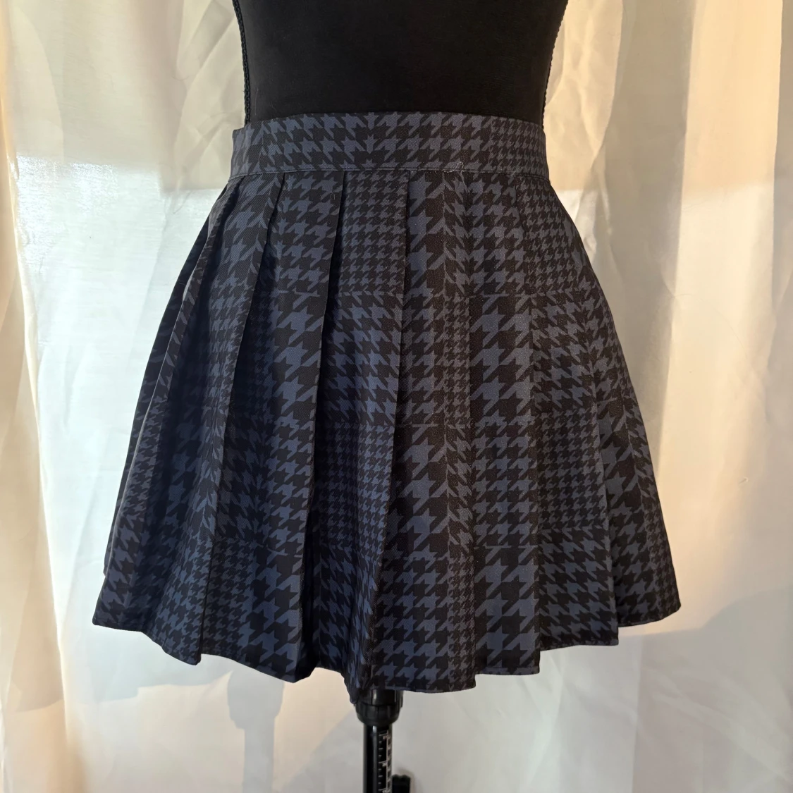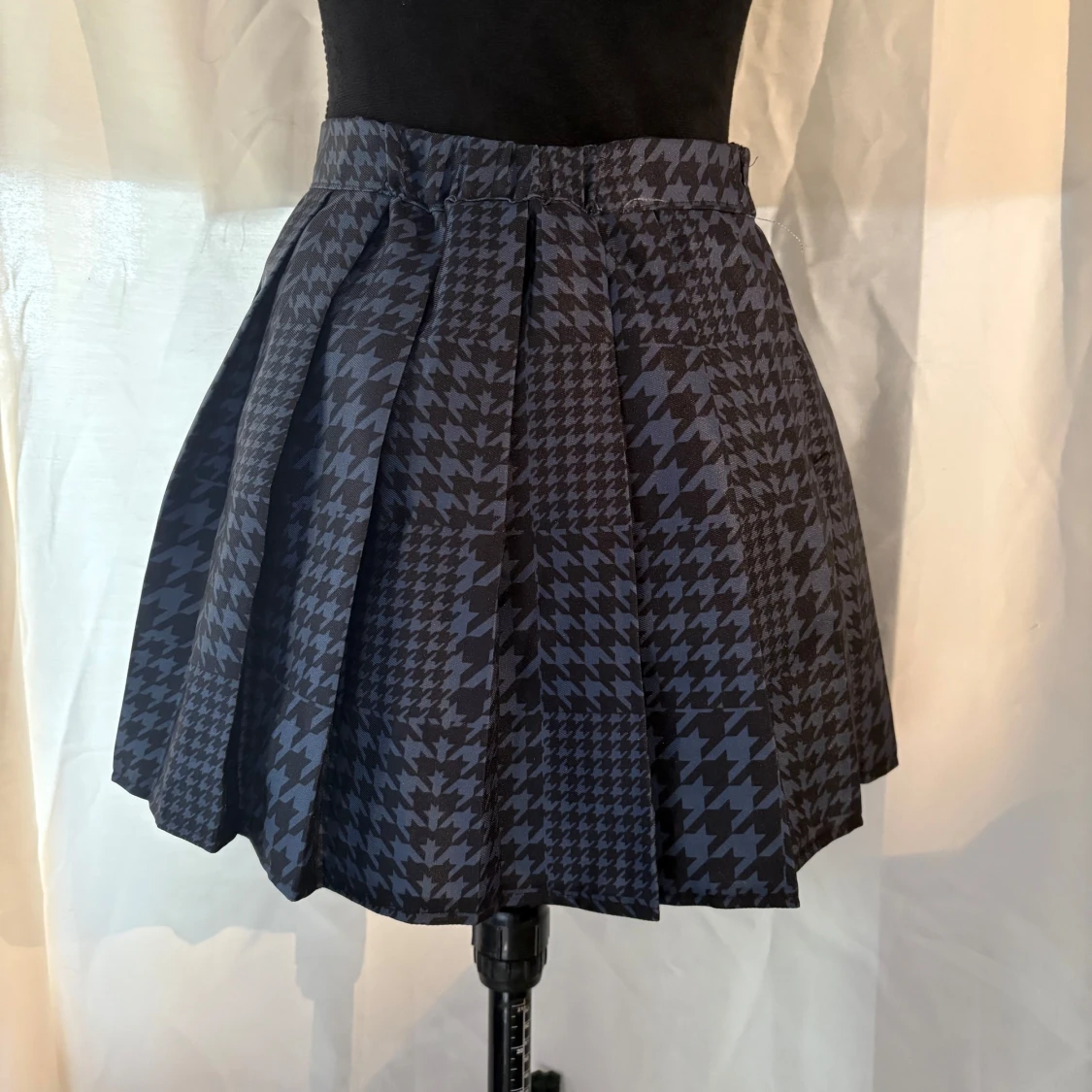 Gammal cosplay kjol för en kakagurui cosplay. Så tyget är polyester och väldigt tunt och plastiskt. Men fin kjol ändå. Lite kort men det är snyggt så :D jag är M och det passar men lite tight