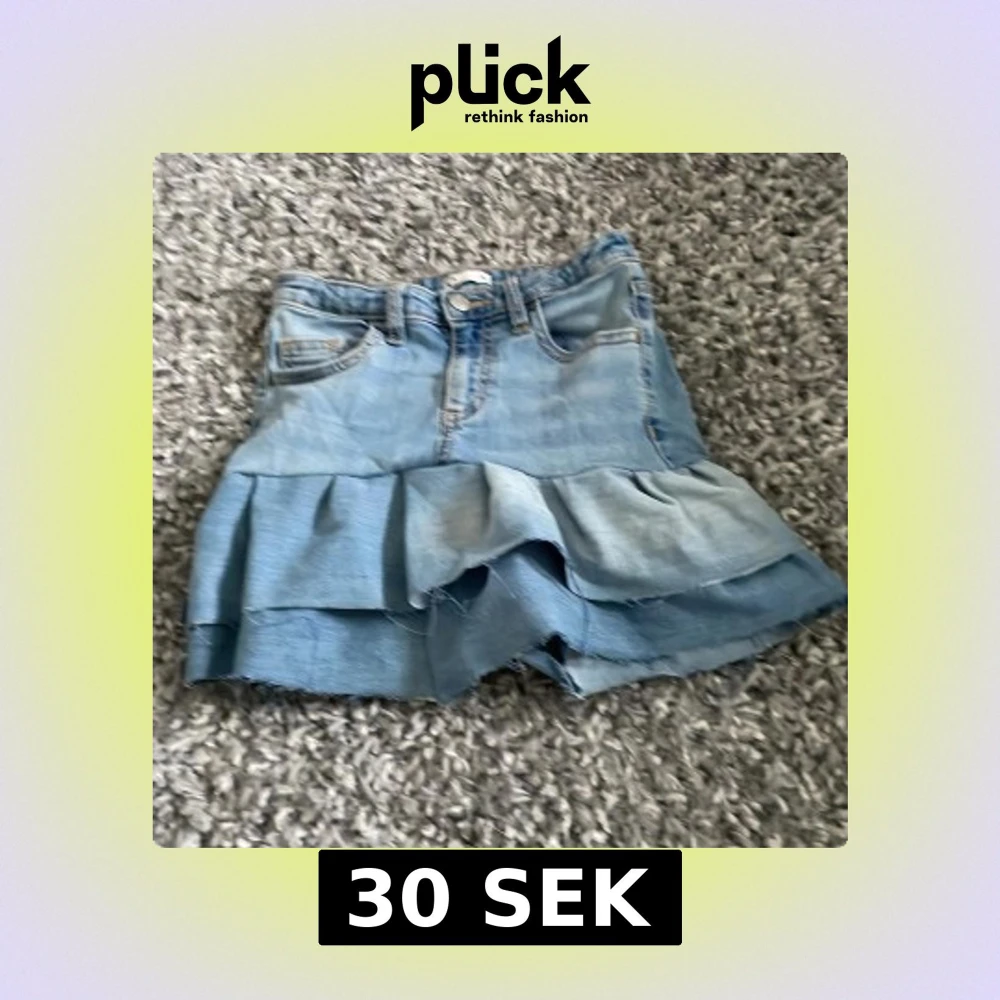 Säljer en kort jeanskjol i ljusblå denim med snygga volangdetaljer nedtill. Kjolen har klassiska fickor fram och bak samt hällor för bälte. Perfekt för dig som gillar en trendig och avslappnad stil.