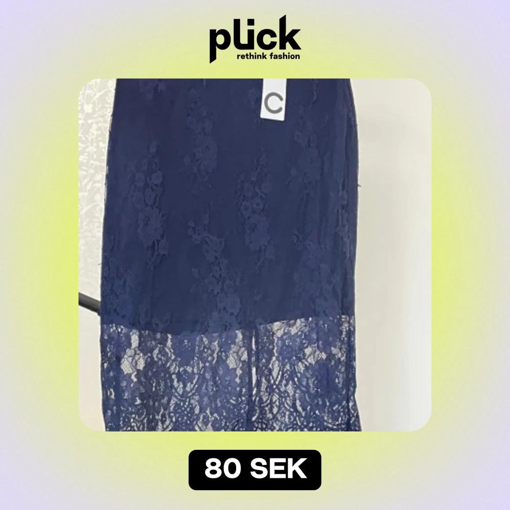 Säljer en superfin mörkblå spetskjol som är perfekt för både fest och sommar. Kjolen har en elegant dragkedja baktill och ett vackert blommigt mönster. Den är i nyskick och har en stilren design med en längre spetsdetalj längst ner. Passar perfekt till en somrig topp eller en festlig blus!