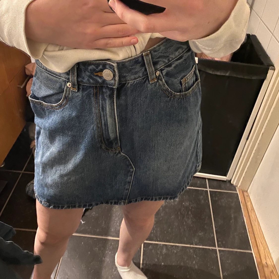 Blå jeanskjol köpt på cubus i storlek m.