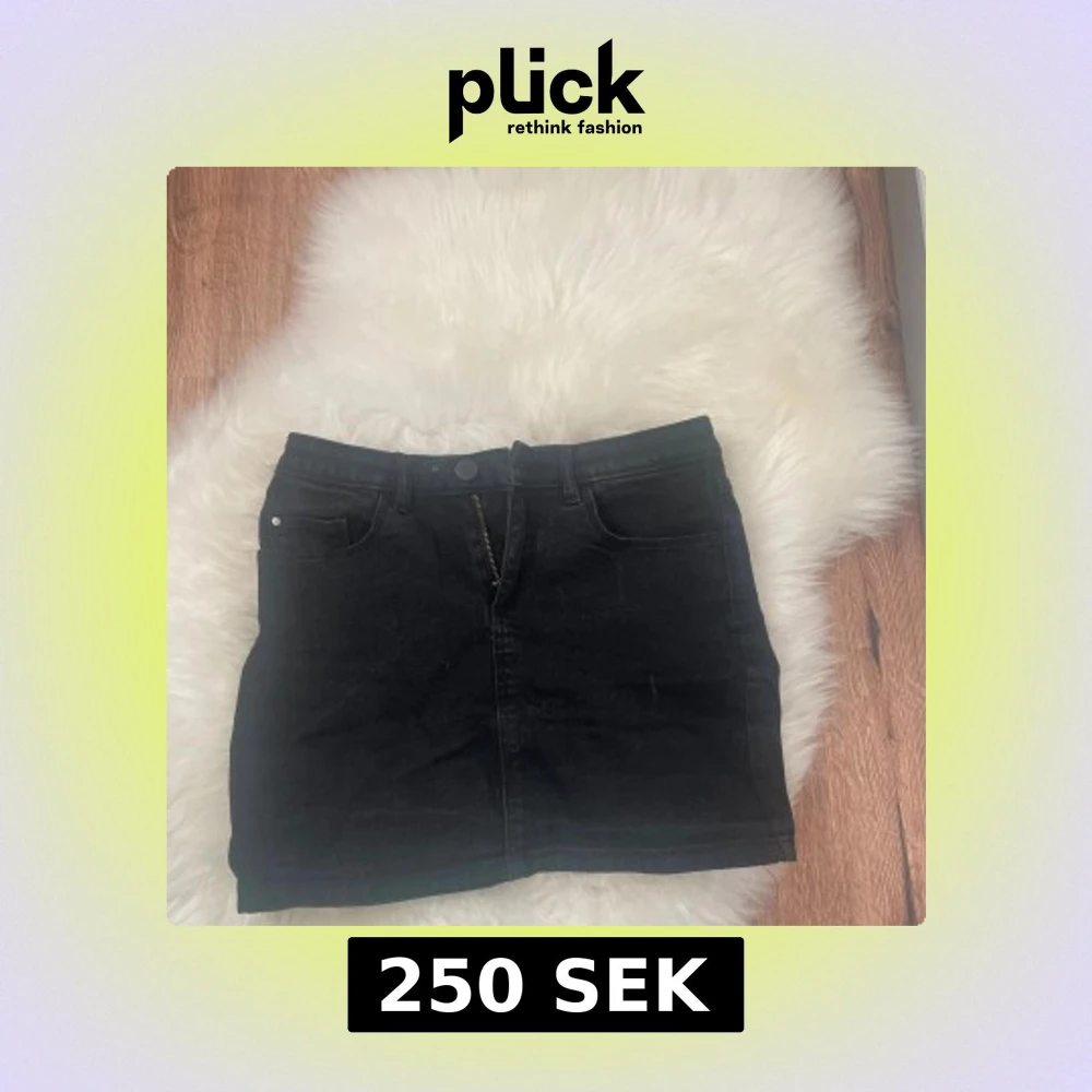 Snygg svart jeanskjol med klassisk femficksdesign och knappstängning fram. Perfekt för en stilren look.