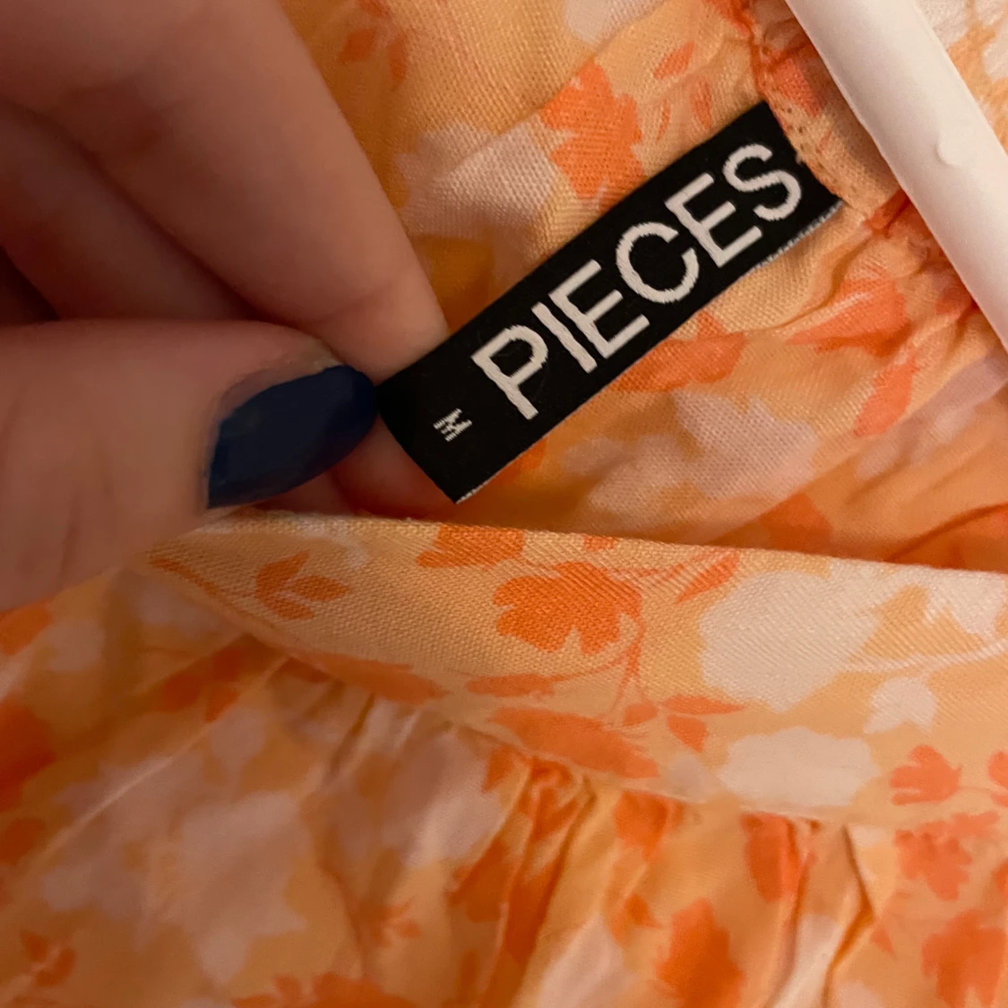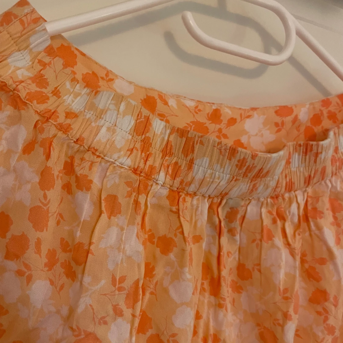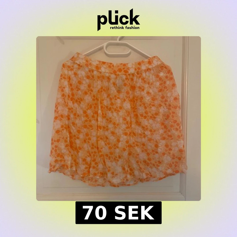 Säljer en söt kortkjol från Pieces med blommigt mönster i orange och vitt. Kjolensbaksida har resår i midjan och är lätt och luftig, perfekt för varma dagar. Passar dig som gillar färg och mönster! Storlek M/38💖använt 1-3 gånger och är bara lite skrynklig 💖