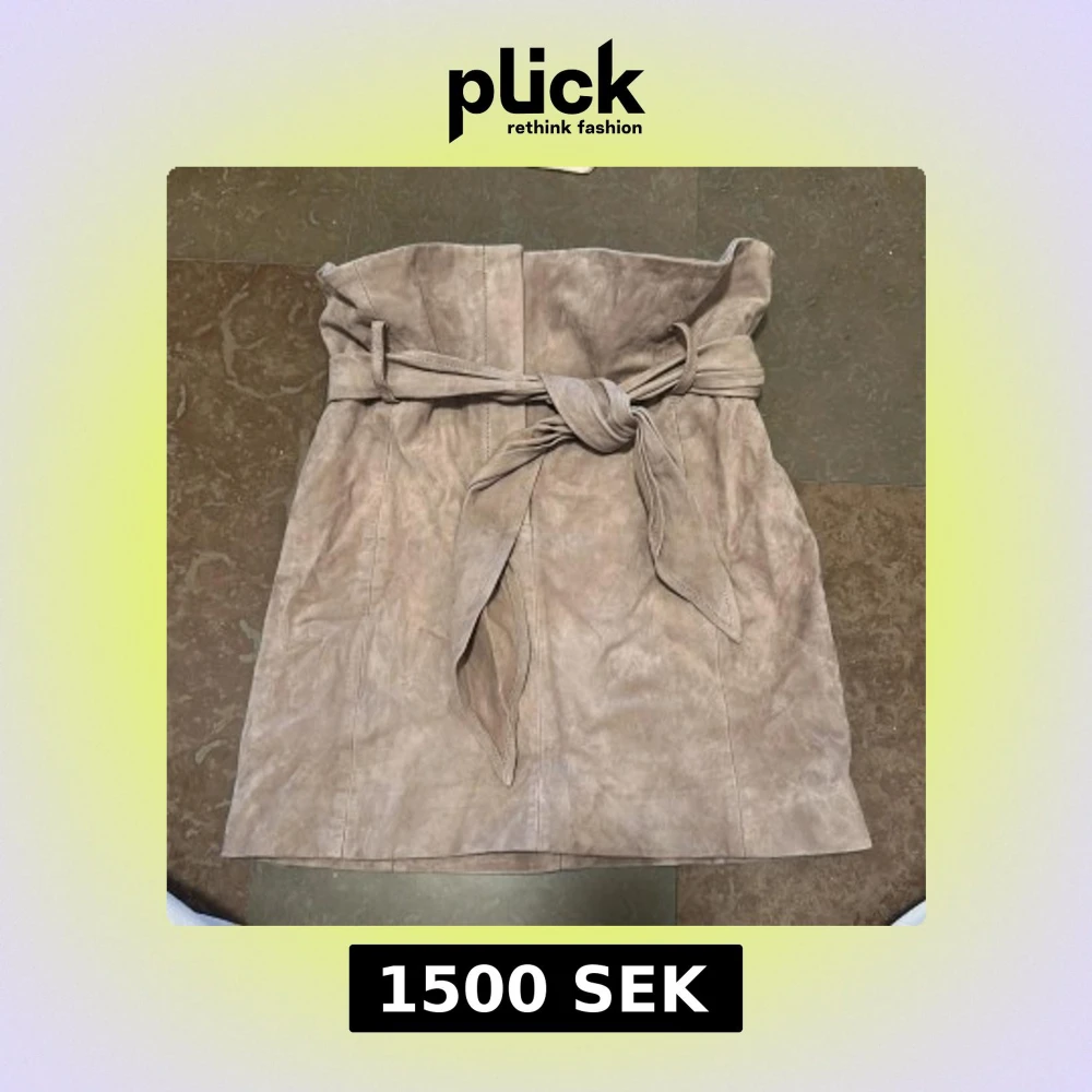 Säljer en snygg beige kjol i mocka från IRO. Kjolen har hög midja, knytbälte och en rak passform. Perfekt för dig som vill ha en stilren och trendig look. Kjolen är kort och har en mjuk känsla i materialet.