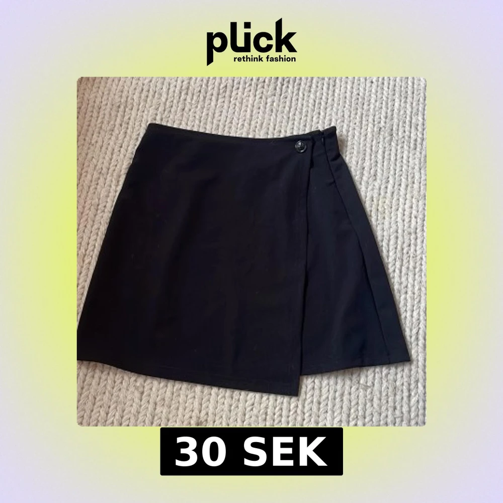 Svart omlottkjol från SHEIN med knappdetalj i midjan. Modellen är kort och har en rak passform.