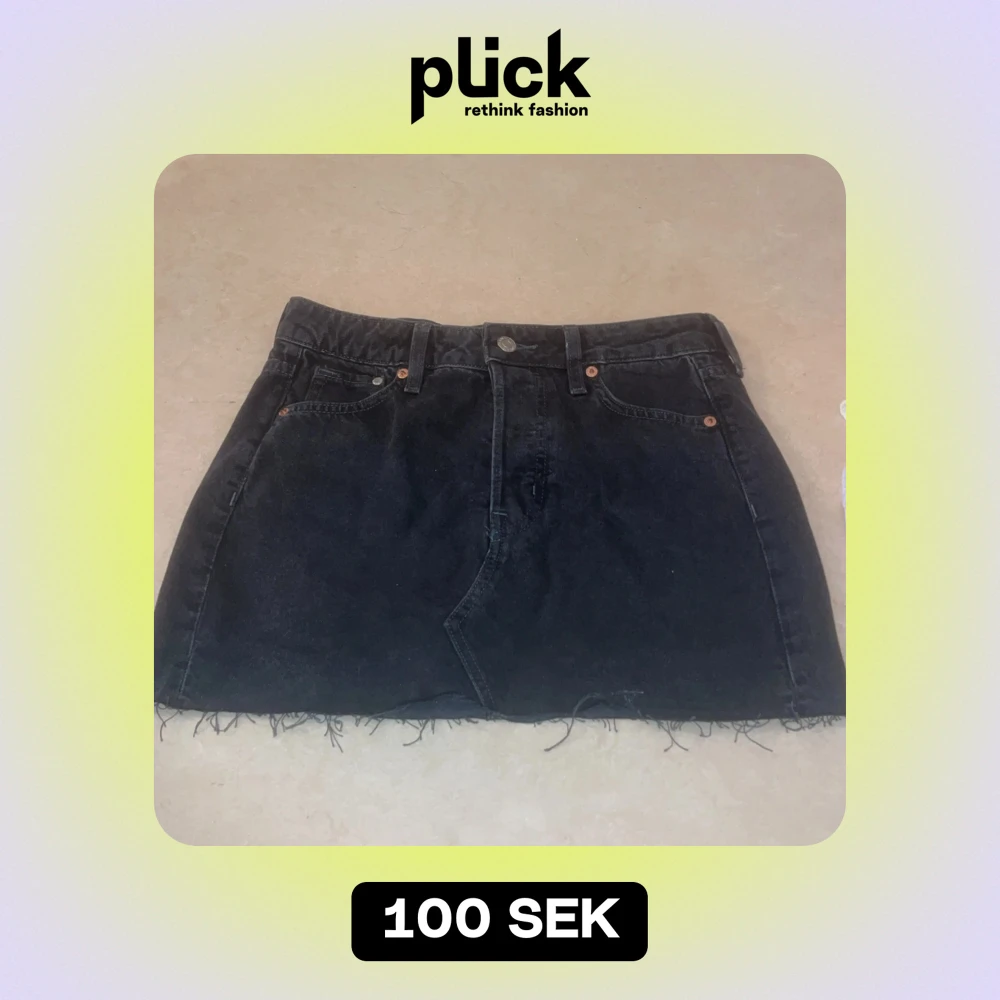 Snygg svart jeanskjol från H&M &Denim i kort modell. Kjolen har en rå kant nertill Perfekt för en avslappnad stil.