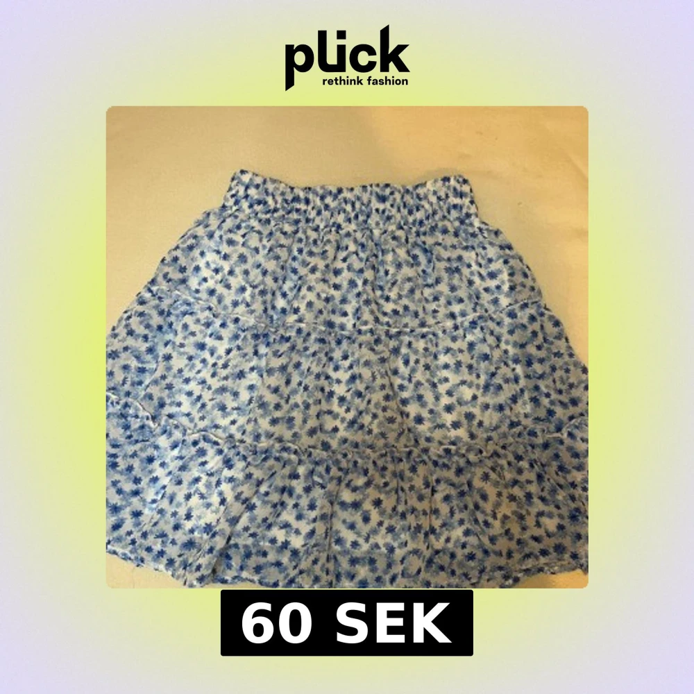 Supersöt kort kjol, med blĂ„tt blommönster och ett slĂ€tt lager under sĂ„ man inte ser igenom. Kjolen har flera volanger och resĂ„r i midjan för en bekvĂ€m passform. Perfekt till sommaren, aldrig anvĂ€nd och pris kan sĂ„klart diskuterasđ