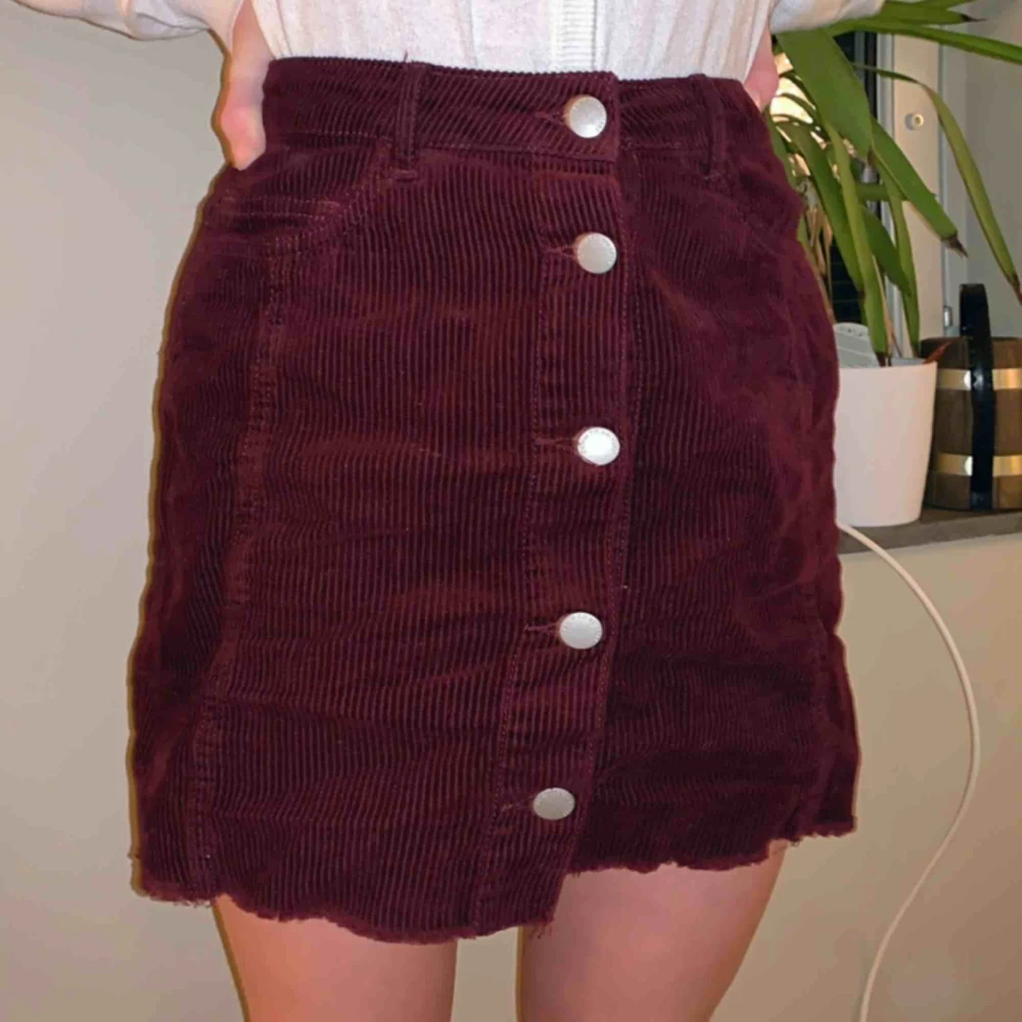 Vinröd Manchester tjol med silver detaljer. Modellen är 170cm
