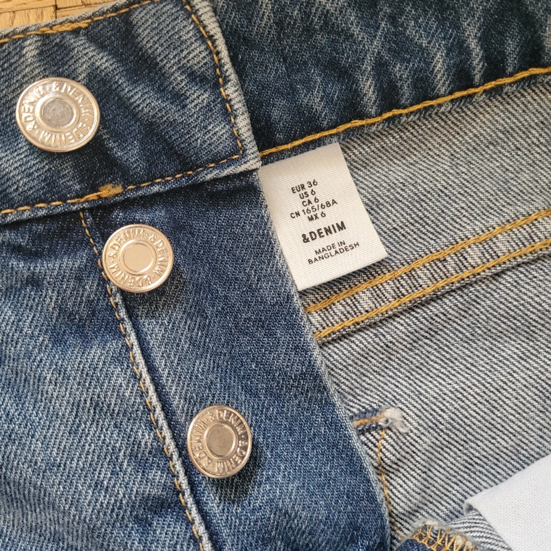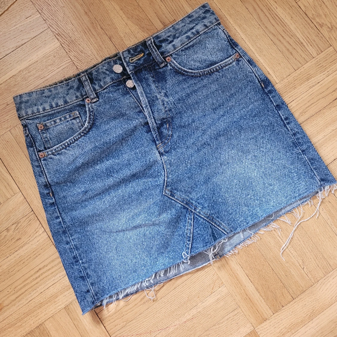 Fin kort jeanskjol &Denim stl.36 Fransig nertill. Som ny!