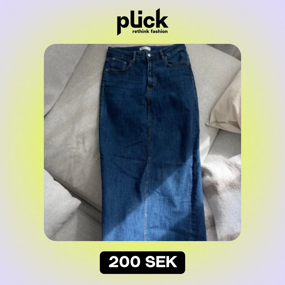 En blå stretchiga denimkjol med mid waist och slit där bak. Storlek 38. Använd flertalet gånger, kan ha någon liten fläck men tvättas såklart innan försäljning! Köparen står för frakten och varan går ej att returnera💙