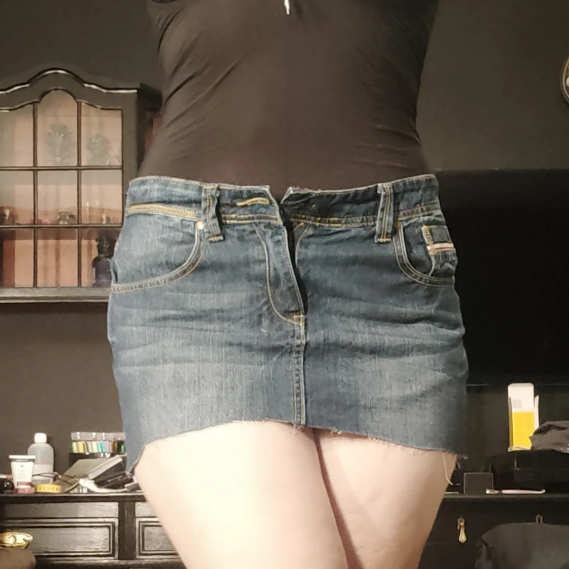 Kort jeans kjol som sitter lite för tajt på mig så säljer därför.