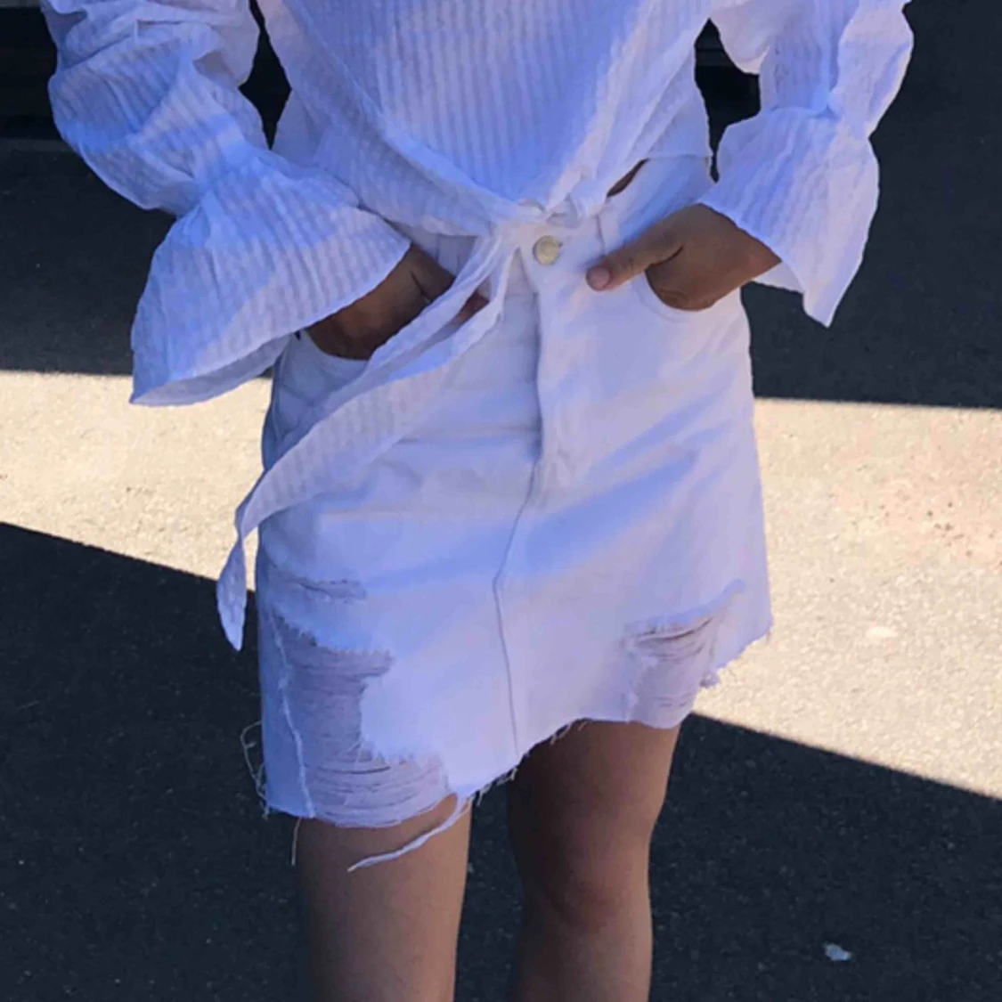 Sliten vit jeanskjol säljes pga för stor, kan mötas upp i kungsbacka/göteborg annars tillkommer frakt