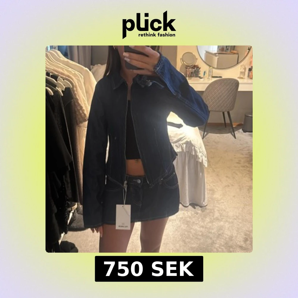 Säljer en mörkblå denimkjol och jacka☺️ kjolen är i storlek 32 och har inbyggda shorts och jackan är i storlek xs💞prislappen är kvar på båda