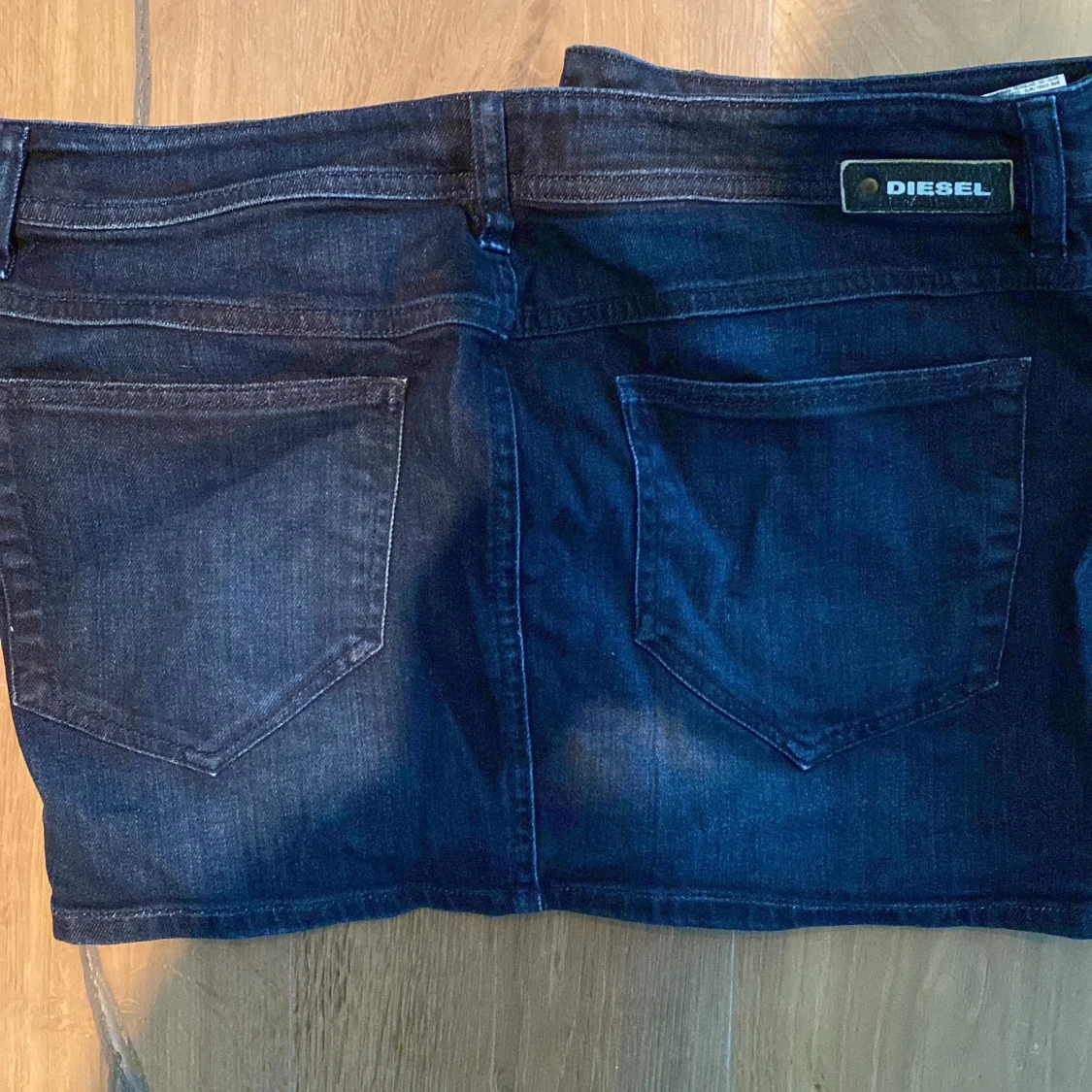 Snygg mörkblå jeanskjol från Diesel med klassiska fickor fram och bak, bälteshällor och knappstängning. Kjolen har en rak, kort modell och är tillverkad i denim med coola slitningar. Perfekt för dig som gillar en avslappnad och trendig stil.