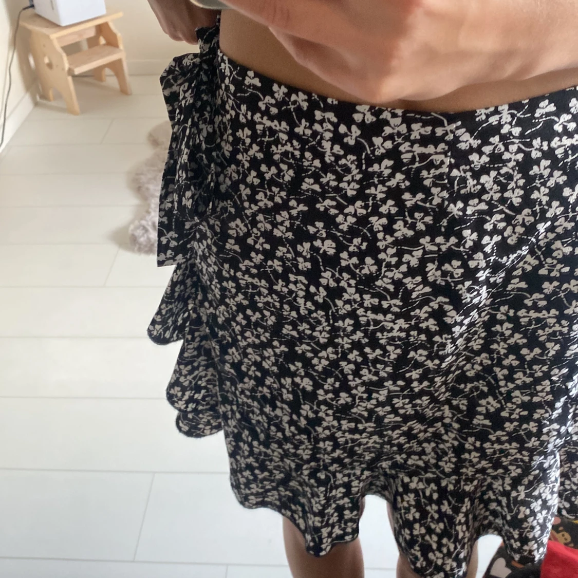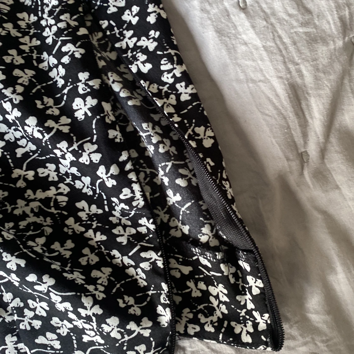 En fin svart kjol med vita klöver på! Den har snöre slm sitter fast på kjolen och en dragkedja på sidan. Säljer pga för stor💓