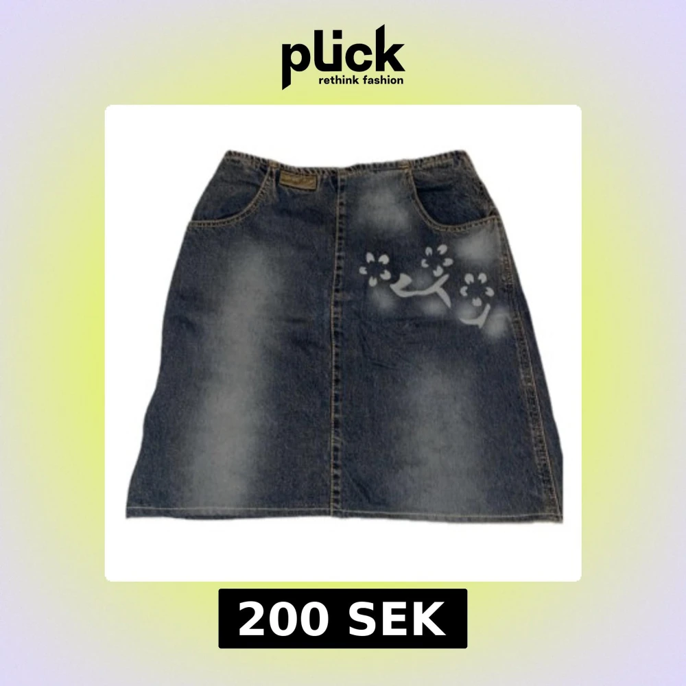Skiiitsnygg jeanskjol med blommönster på framsidan. Passar tyvärr inte mig