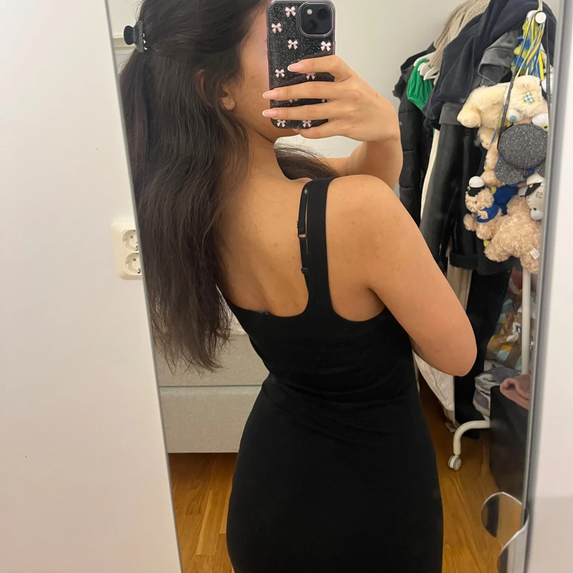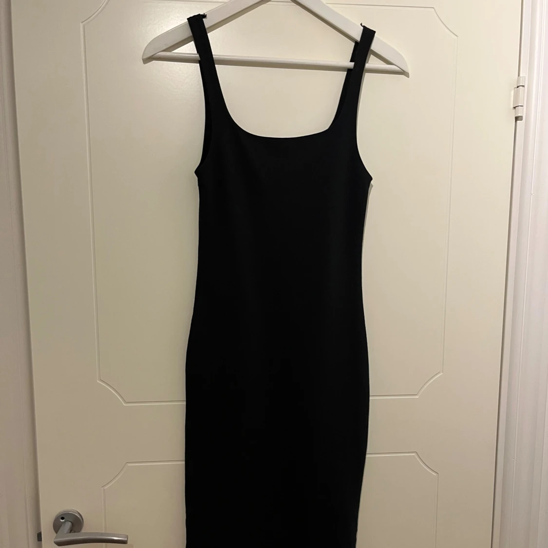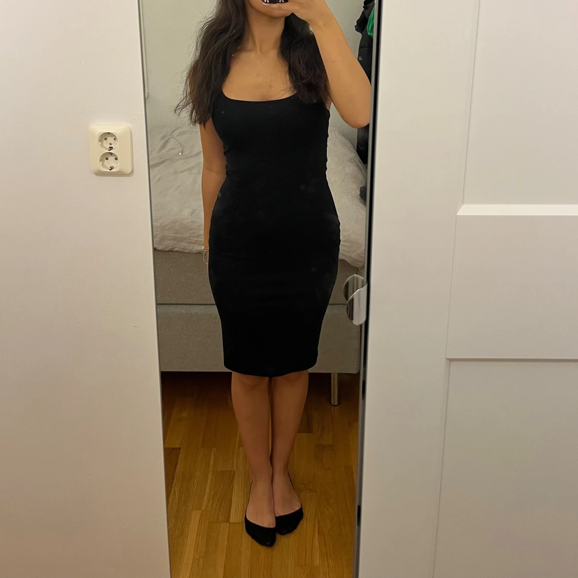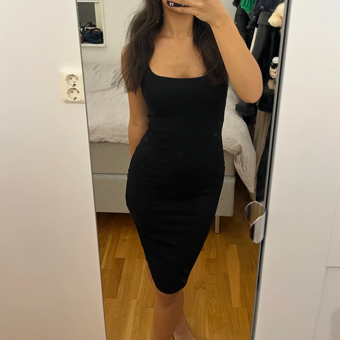 Säljer min svarta klänningen köpt flera år sedan från Zaras gamla kollektion. Den har knappt kommit till användning och är i ett väldigt tjockt och skönt material. Den sitter fint åt kroppen och har en kort slits baktill.
