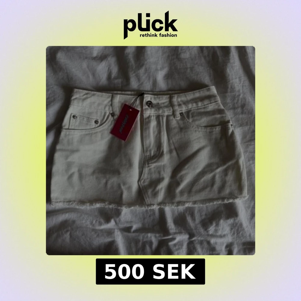 Säljer en vit jeanskjol från Edikted i kort modell. Kjolen är i ny skick. Säljer för 500 då ny pris är 995kr