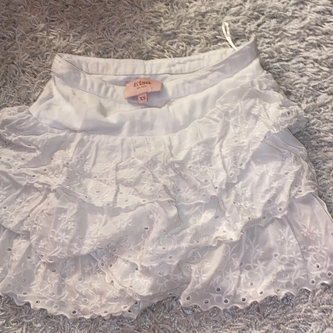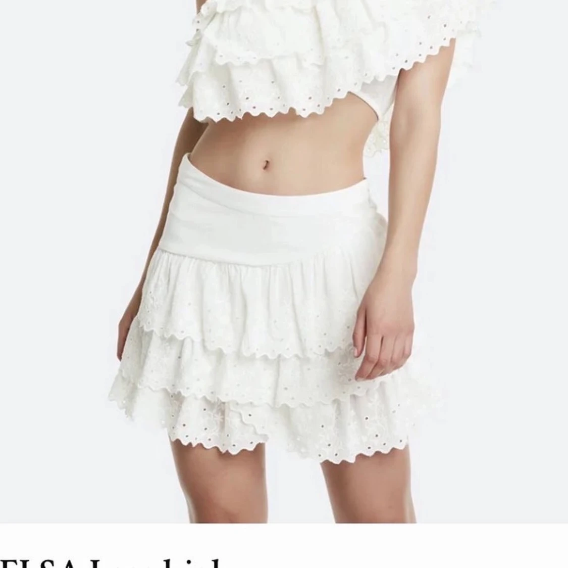Vit volangkjol från bikboks kollektion med Elsa Hosk. Stl 34/XS. Använd några gånger men har inga skador. Säljer för 135kr, köparen står för frakt. Nypris ca 399kr.💓😊