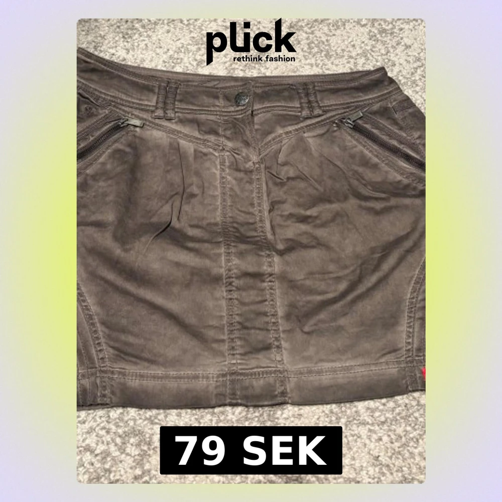 Säljer en brun kortkjol från Esprit med snygga detaljer som dragkedjor vid fickorna och markerade sömmar. Kjolen har bälteshällor och knappstängning framtill. Perfekt för dig som gillar en enkel men cool stil.