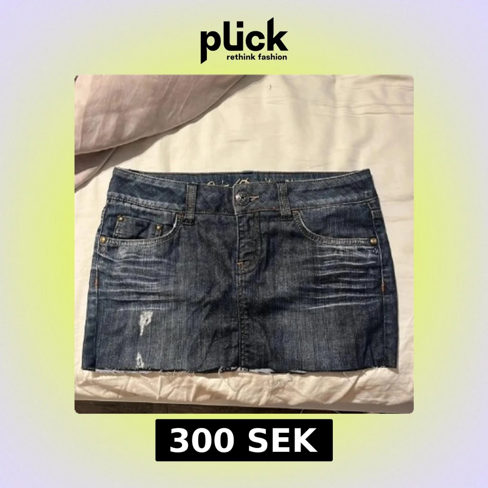 Snygg mörkblå jeanskjol från Esprit med slitna detaljer och rå kant nertill. Storlek 27 men sitter som en S midjemått: 40 cm
