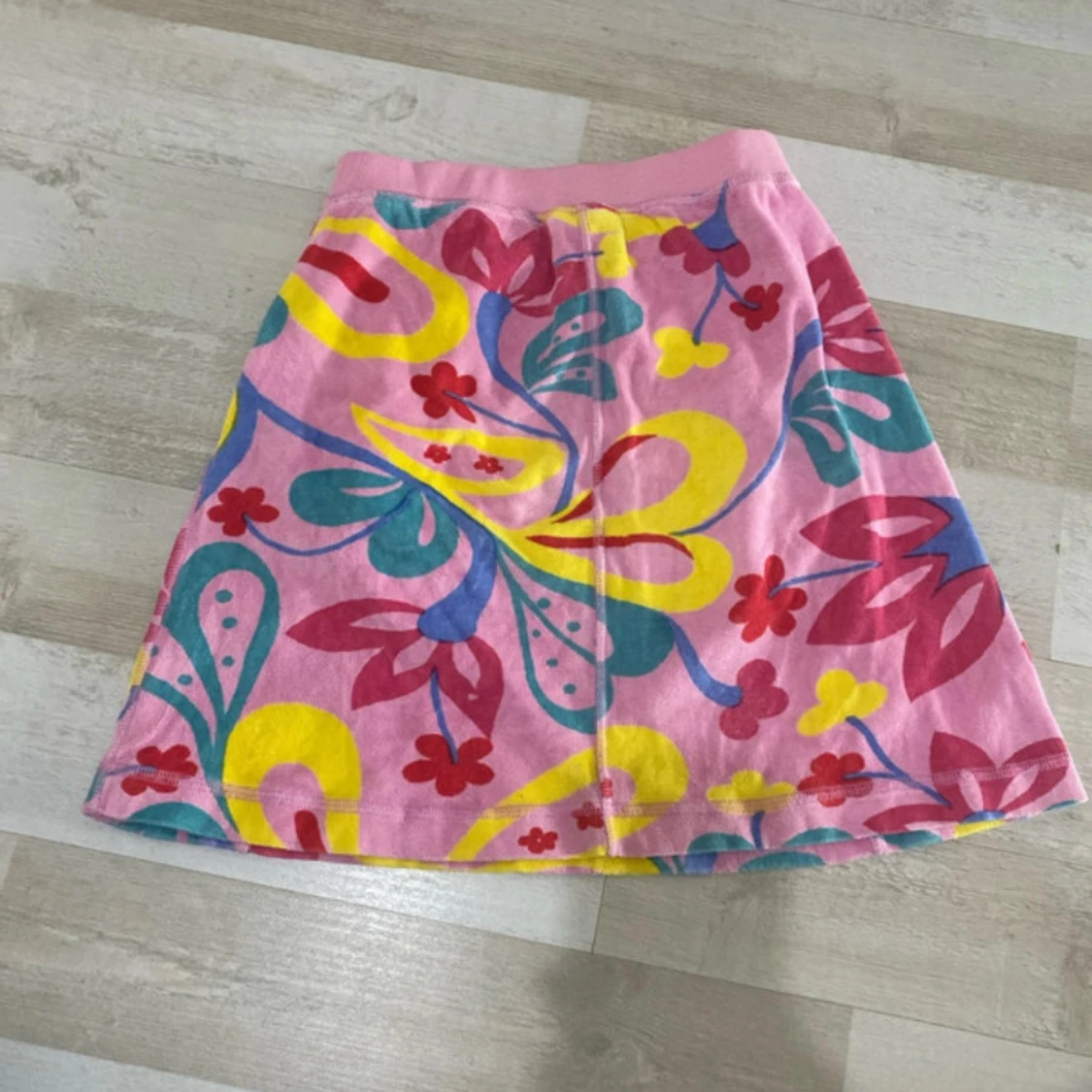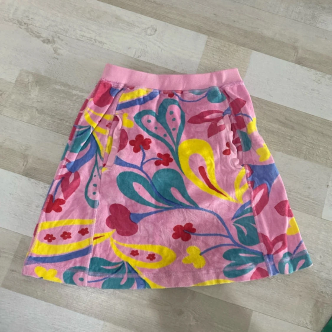 Superfin kortkjol i mjuk frotté med färgglatt blommönster i rosa, gult, blått, rött och grönt. Kjolen har bred resår i midjan och två fickor fram. Perfekt för sommarens alla äventyr och ger en riktigt glad vibe!