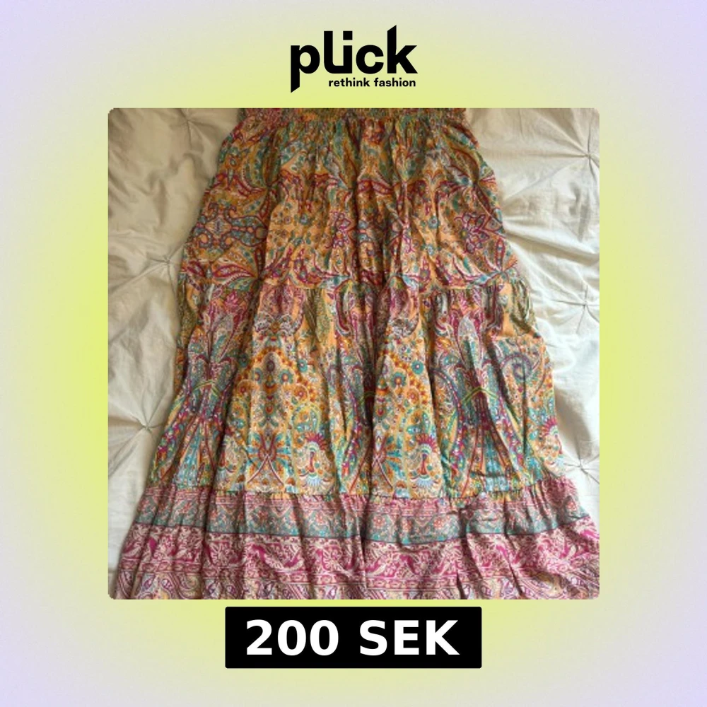 Superfin långkjol från Marta med färgstarkt blommigt mönster i rosa, orange, blått och grönt. Kjolen har volanger och resår i midjan för en skön passform. Perfekt för dig som gillar boho-vibes och vill sticka ut med din stil.