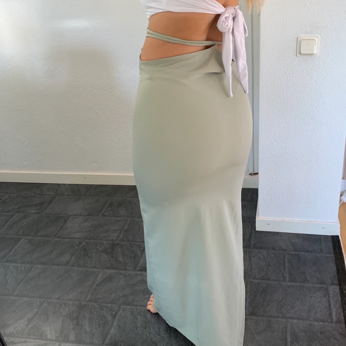 Finaste kjolen från FashionNova. Split och knytning vid midjan, liten gulddetalj. Lapp kvar! Står S men den är lite liten så skulle säga mer xs-s, beroende på kroppsform.