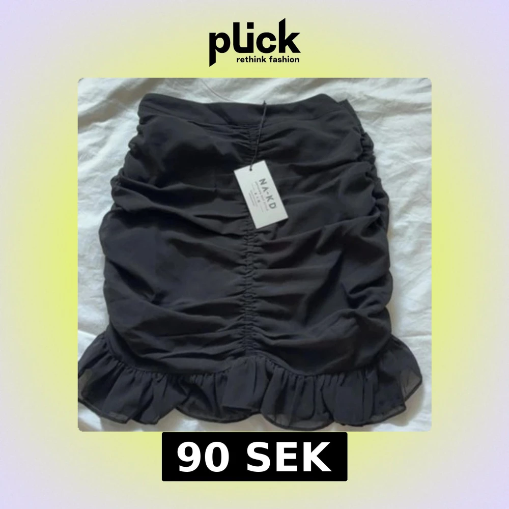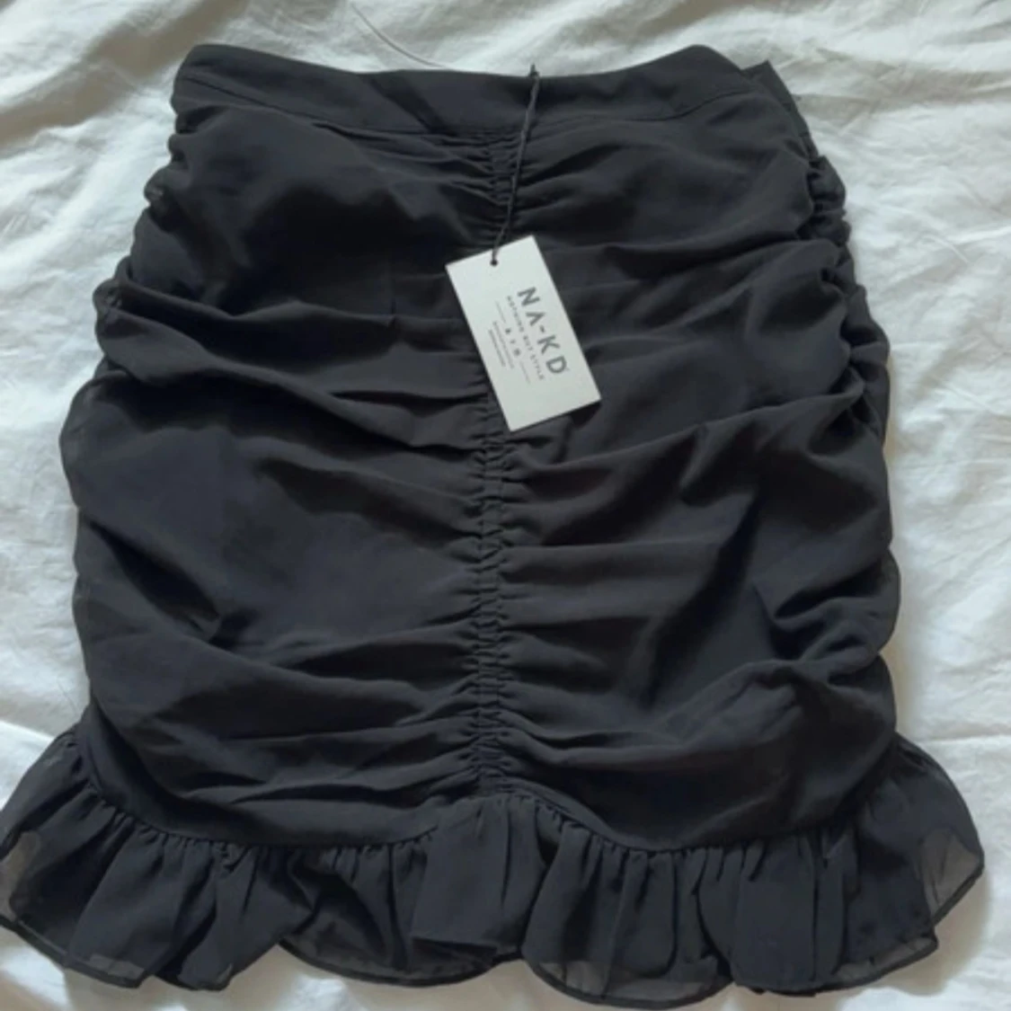 Trendig svart kjol från NA-KD med volangdetaljer. Perfekt för att skapa en stilfull look. Kjolen har en kort längd och är tillverkad i ett mjukt material. Helt ny med prislapp kvar