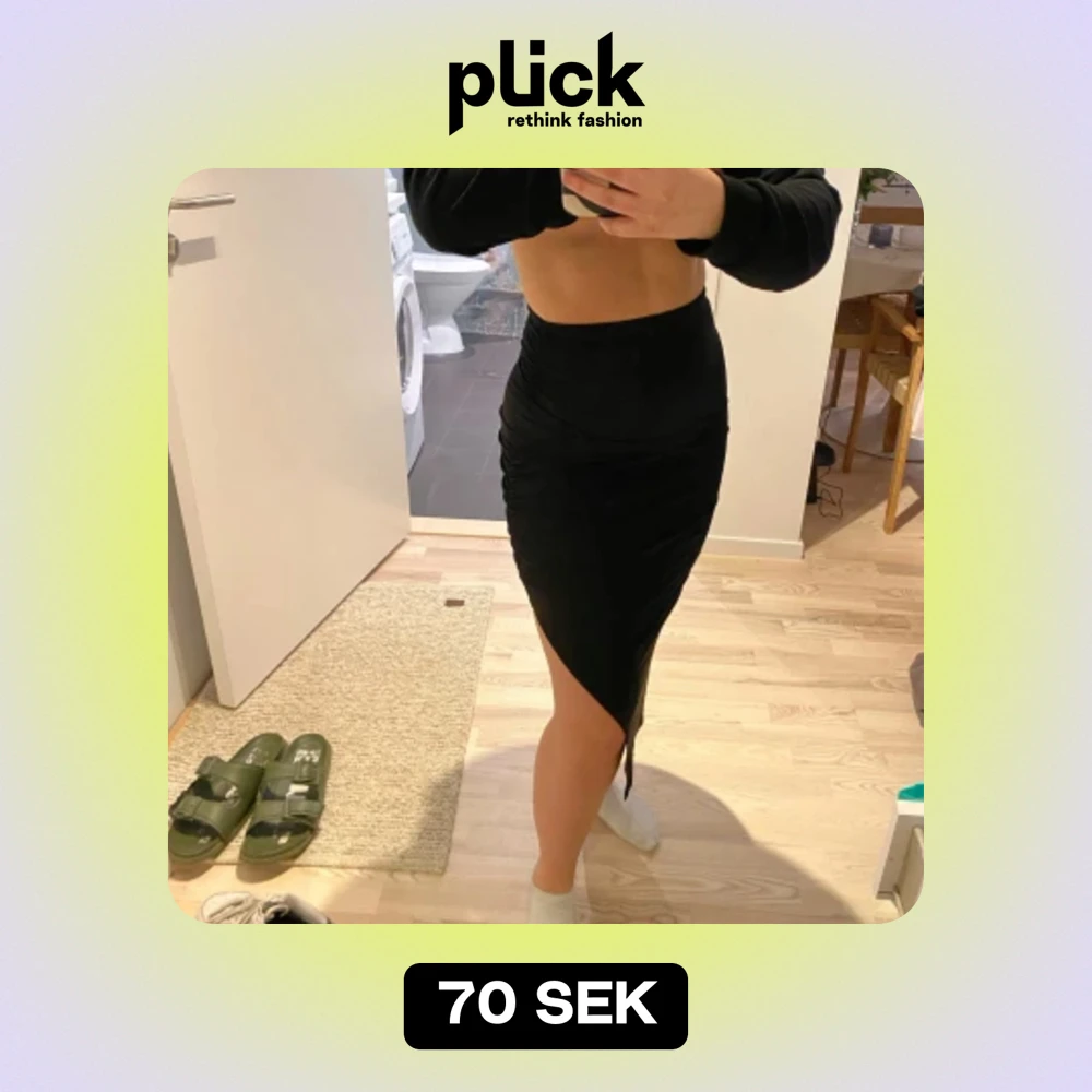 Kjol i glansigt material med slits och scrunch på sidan från Shein. Kjolen är stretchig, ger trevlig passform och har resor i midjan