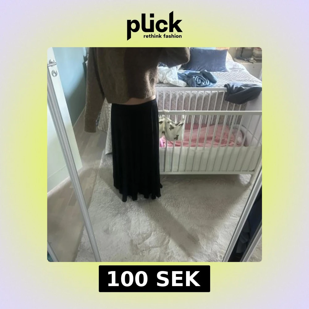 Säljer en svart långkjol med mjukt och flödande tyg. Kjolen har en enkel och stilren design utan synliga detaljer eller mönster. Perfekt för dig som gillar en klassisk och tidlös look.