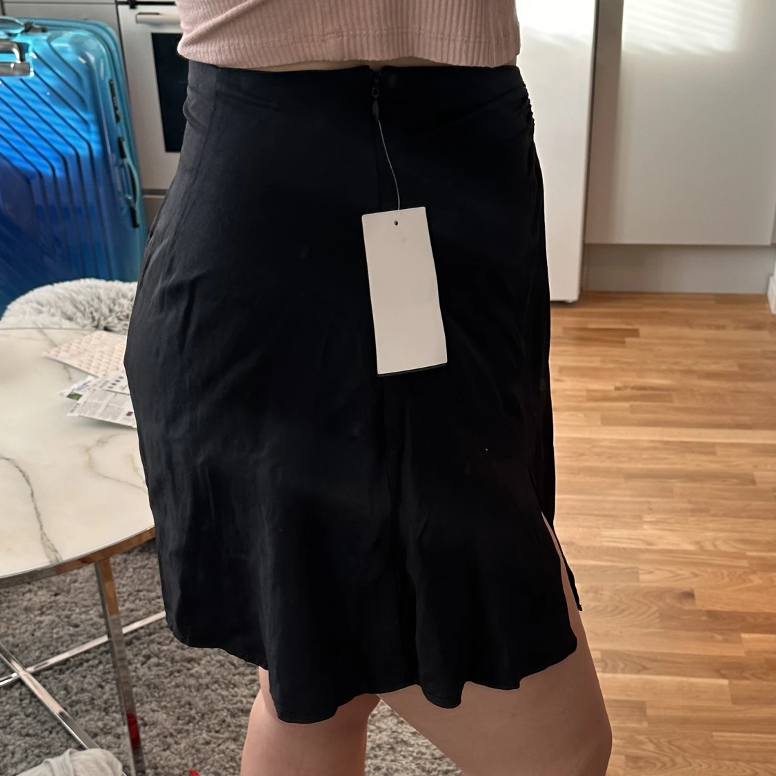 Snygg kjol med fin detalj på framsidan. Dragkedja på sidan och ett otroligt skönt material. Kan användas till vardags och till fest. Mer info på sista bilden. Jag är 172cm. Är helt oanvänd! KOLLA GÄRNA IN MINA ANDRA ANONSER, DET MESTA ÄR HELT OANVÄNT 🥰