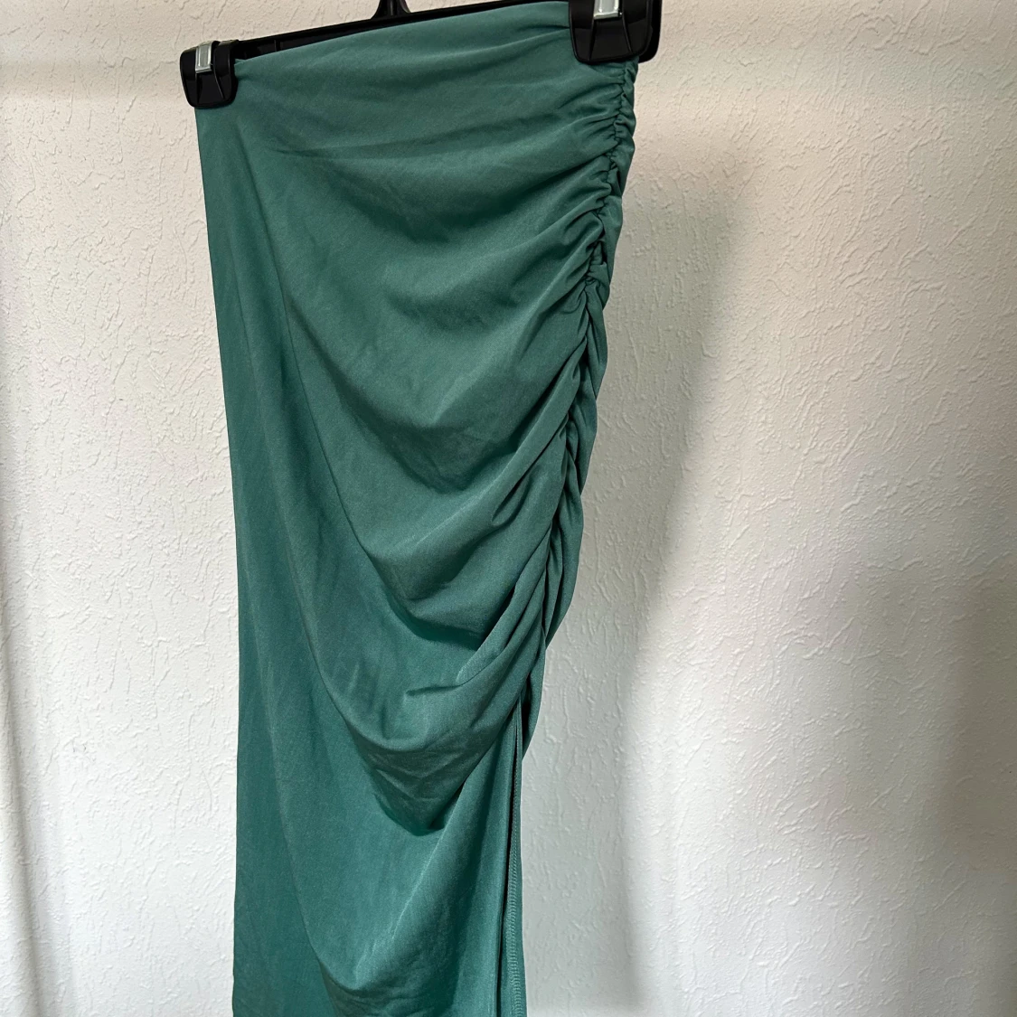 En super vacker grön/blå silkes kjol men ett tjockare tyg som ger en fin form, scrunch och slits på sidan. Aldrig använd