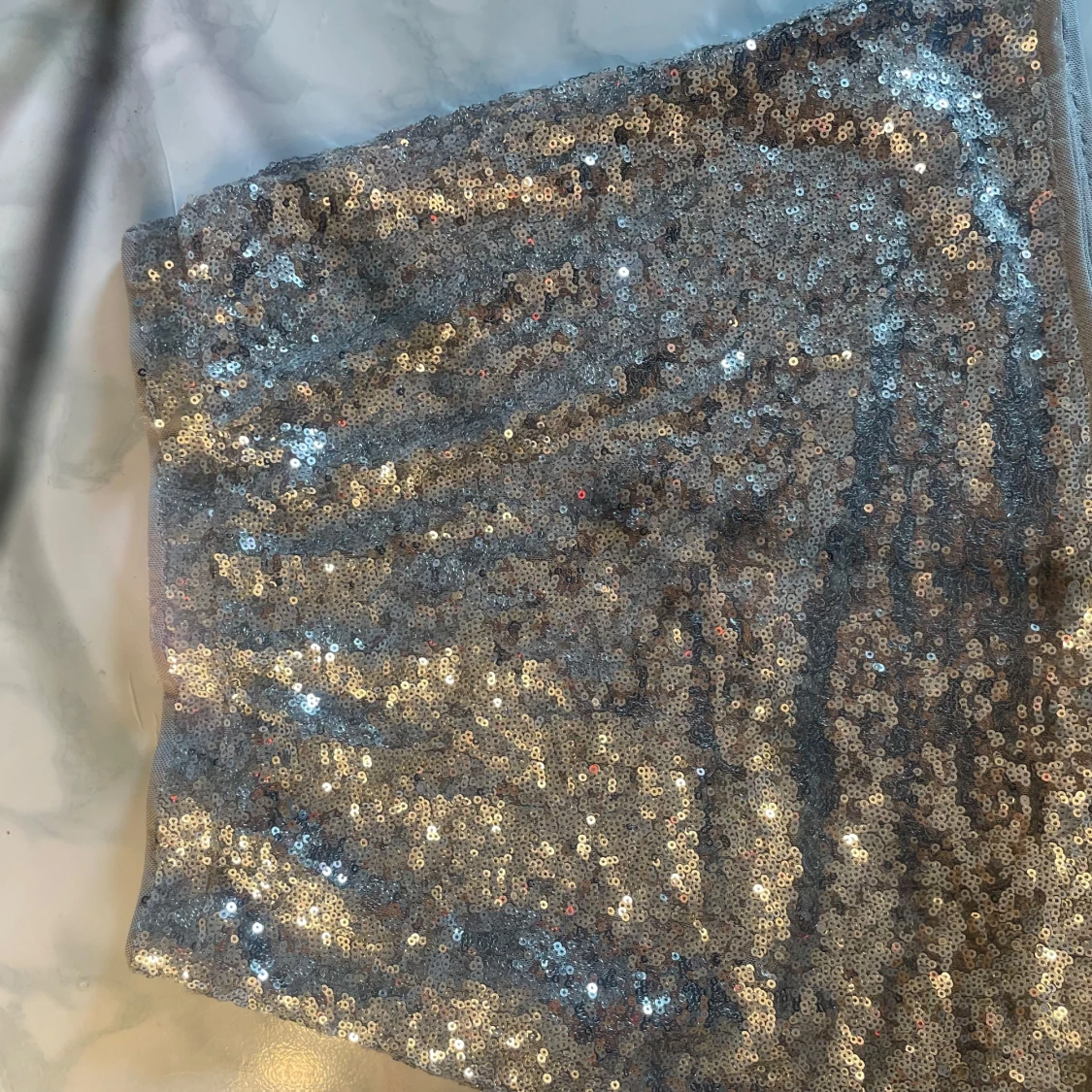 Superglittrig kortkjol från Gina Tricot i silver med massor av paljetter över hela tyget. Kjolen har en rak passform och är fodrad på insidan för extra komfort. Perfekt för dig som vill sticka ut och glänsa.