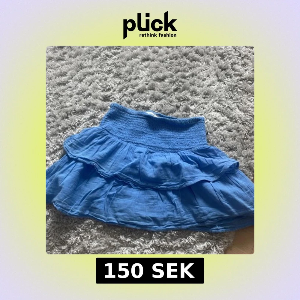 Supersöt blå kortkjol från Gina Tricot med bred smock i midjan och dubbla volanger. Kjolen är luftig och lätt, perfekt för varma dagar. Enkel att matcha med en crop top eller t-shirt för en chill look. Det är storlek 146/152 men de är så pass stretchig så den passar nog en storlek större. Pris kan diskuteras❤️