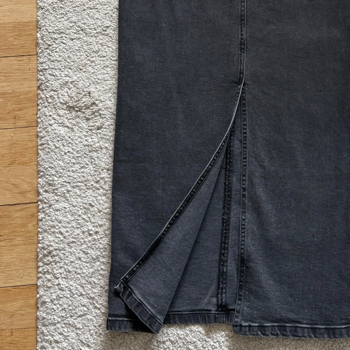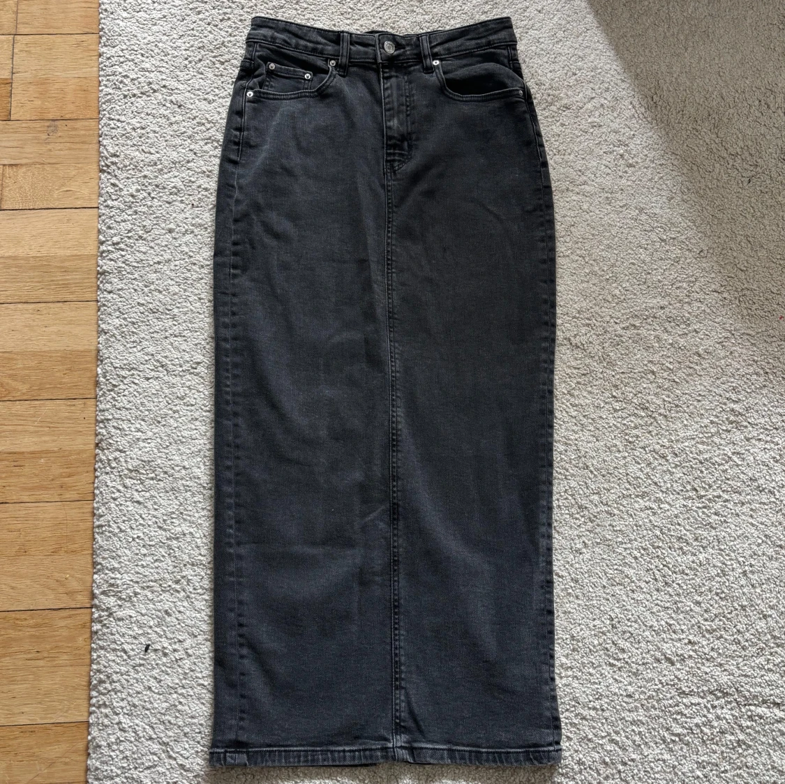Säljer en mörkgrå lång jeanskjol med slits baktill från Gina Tricot. Kjolen har 4 fickor, hög midja och en slits bak. Perfekt att styla med sneakers eller boots för en cool look. Aldrig använd men utan prislapp.