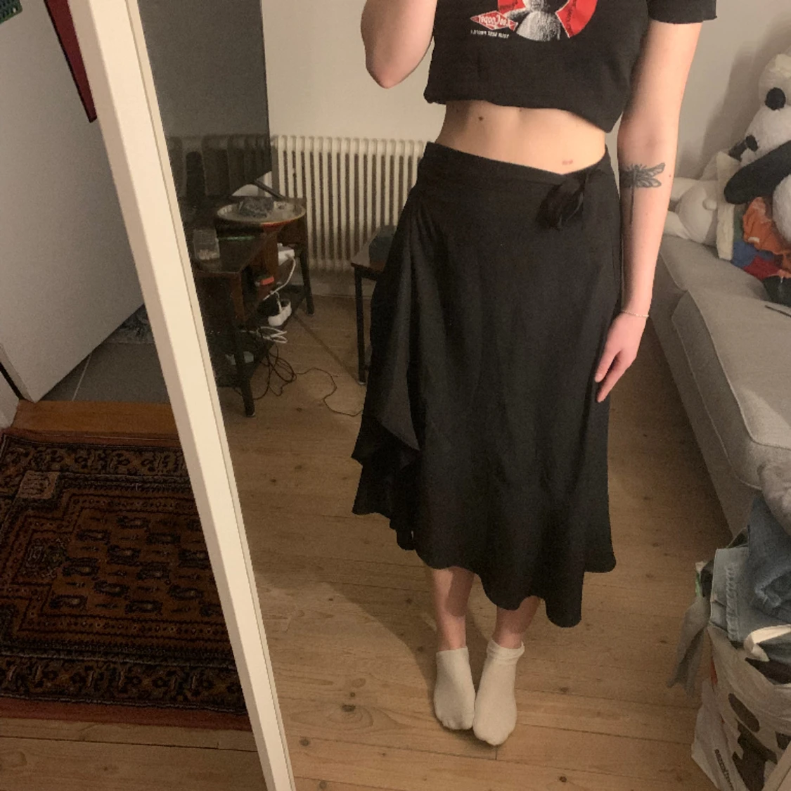 Svart omlott kjol från Gina tricot i storlek 36, funkar som fler storlekar eftersom man själv knyter kjolen med hjälp av band. Säljer för 100kr