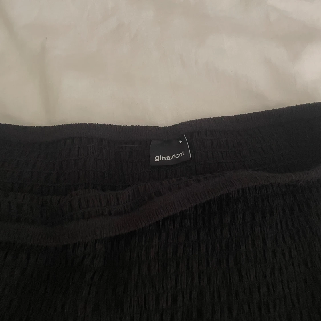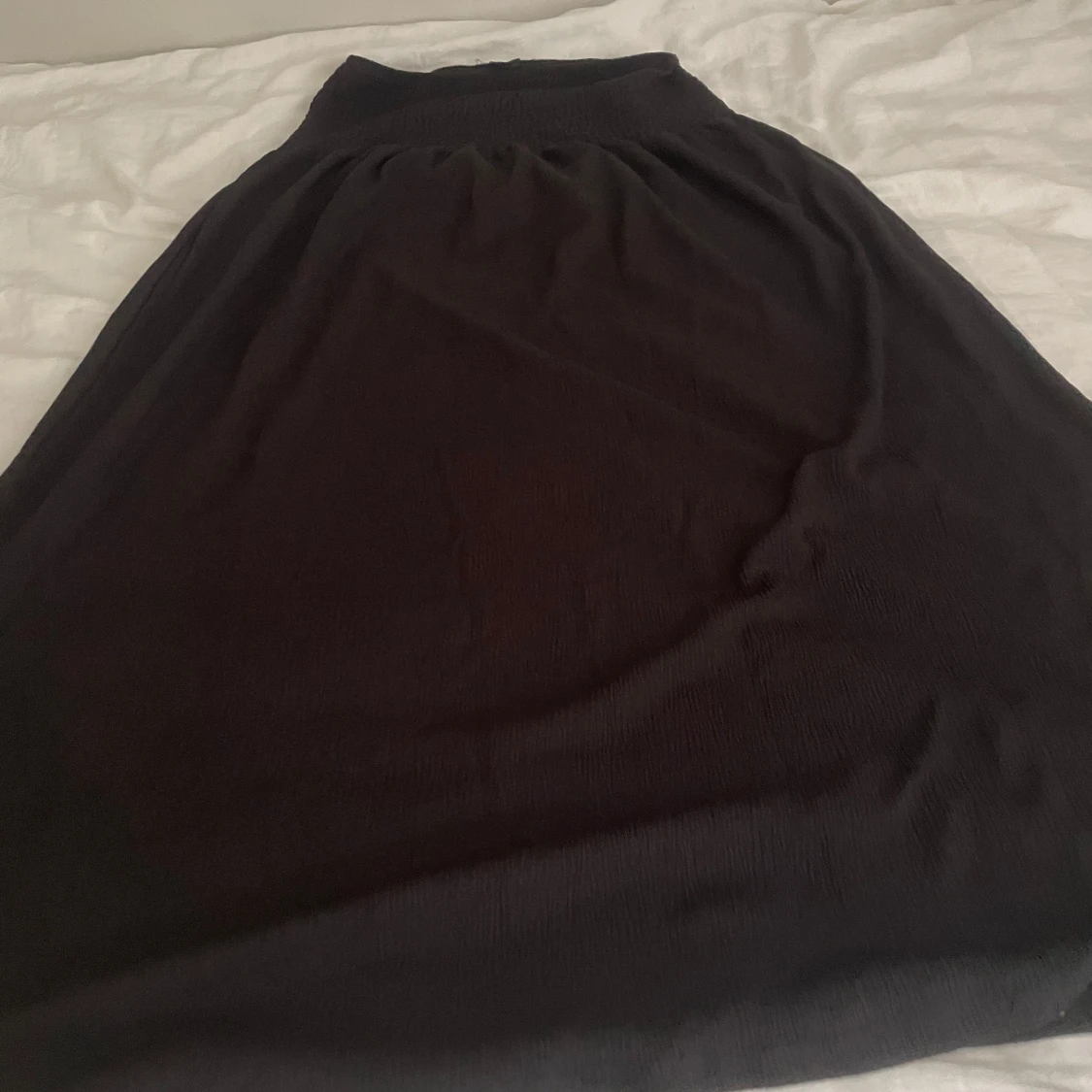 Svart långkjol från Gina Tricot med smockad midja som ger en skön och flexibel passform. Kjolen är enkel och stilren utan mönster, tillverkad i ett mjukt syntetmaterial. Perfekt för dig som gillar minimalistisk och bekväm stil.
