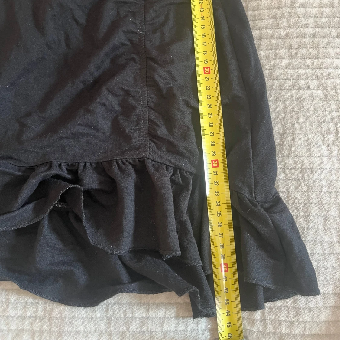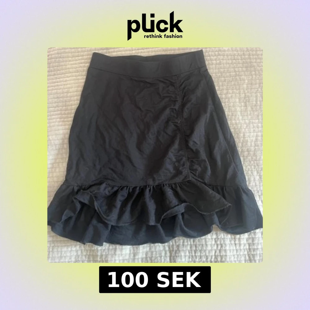 Supersöt svart kjol från Gina Tricot med volangkant nertill. Kjolen är kort och har en enkel, stilren design. 📩 Skicka gärna ett meddelande vid frågor eller om du vill ha flera bilder! 🌸😊 📦 Jag skickar snabbt och packar alltid med omsorg!
