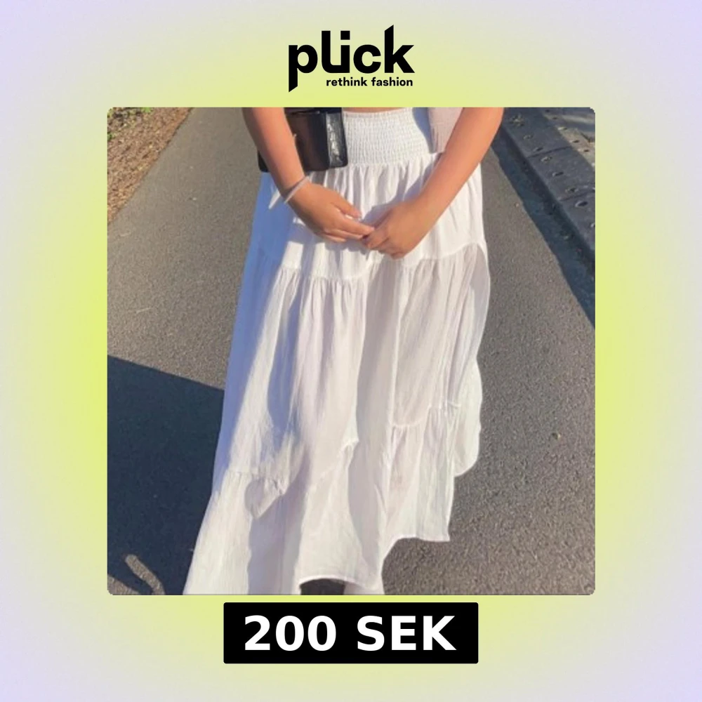 Superfin vit långkjol med volangdetaljer och smock i midjan. Kjolen är luftig och har en flowy känsla, perfekt för varma dagar. Passar snyggt till crop tops eller stickade tröjor.