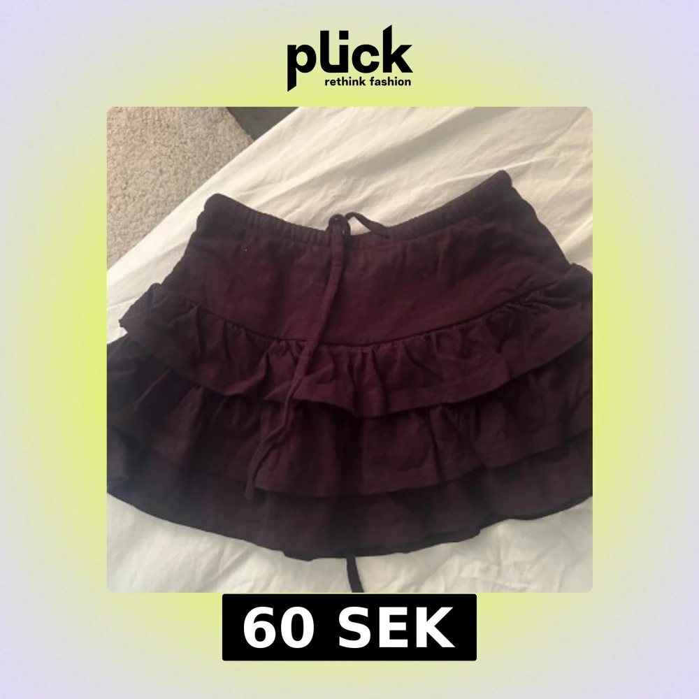 Supersöt mörklila kortkjol från Gina Tricot med dubbla volanger och knytband i midjan. Kjolen har en skön passform och är perfekt för dig som gillar en feminin och trendig stil. Tillverkad i mjukt bomullstyg.