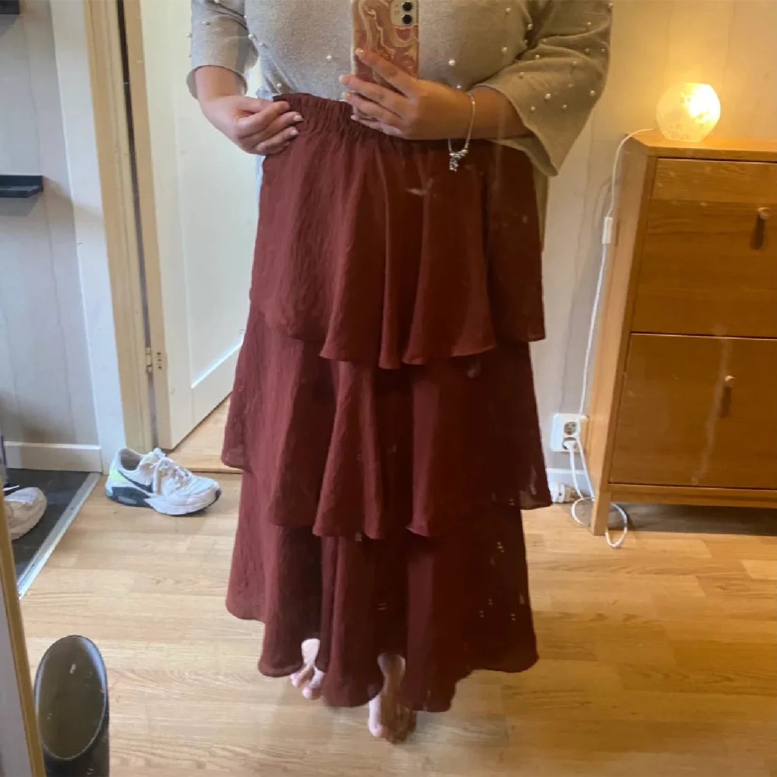 En roströd kjol som är så delning och fin men tyvärr lite för liten för mig. Storlek 36 från Gina tricot. 💕